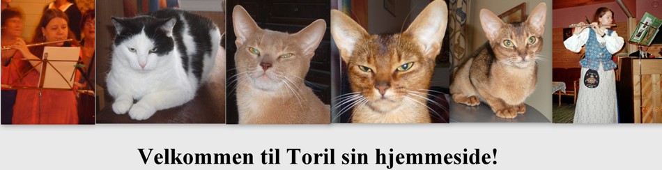 Jeg håper hjemmesiden min vil falle i smak for dere som besøker den!:) På hjemmesiden min vil du finne informasjon om meg og mine interesser. Min hovedinteresse er musikk, og jeg er frilancemusiker. Spiller tverrfløyte. Jeg har flere spilleoppdrag på tverrfløyta ved ulike anledninger som gudstjenester, begravelse, bryllup m.m, og jeg stortrives!:) En annen av mine hovedinteresser er dyr, og da spesielt katter. Da jeg var barn vokste jeg opp med verdens skjønneste hund (en sort/hvit engelsksetter). Likevel var jeg fasinert over kattene. Katter skjønner og forstår kjempemye, og de forstår mye mere enn hva vi mennesker forstår! Nå har jeg fem kjempeherlige katter (en huskatt og fire abyssinere). Reiser av og til på utstilling, og har noen kull i ny og ne!:)