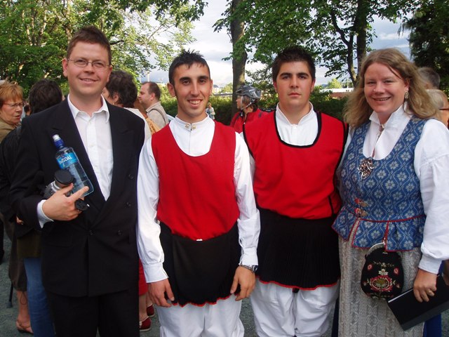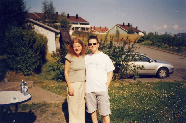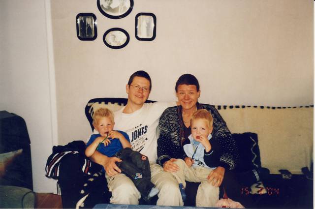 Halvard og meg utenfor Ilen Kirke sammen Giussepe og Giovanni (de to Sardiske guttene som bodde hjemme hos oss da Coro De Iddanoa De Monteleoen var på besøk i Trondheim).