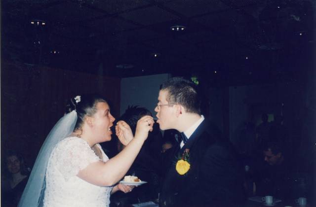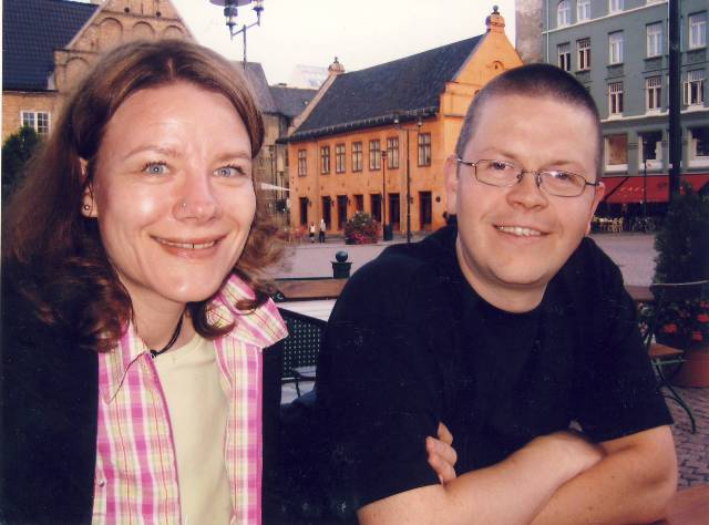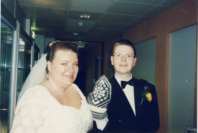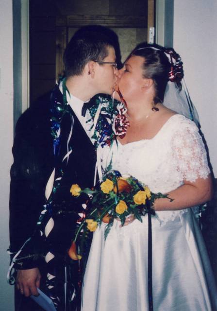 Min mann og meg selv etter vielsen 20.10.2001!<3