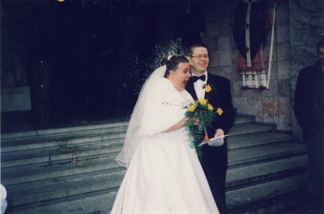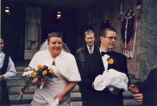 Min mann og meg etter vielsen vår 20.10.2001<3