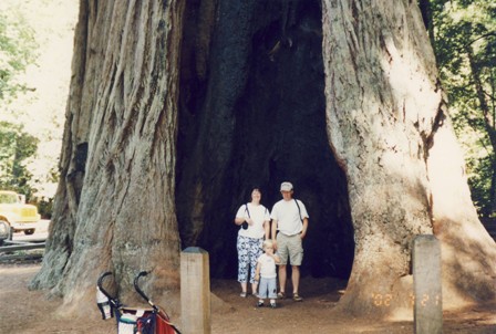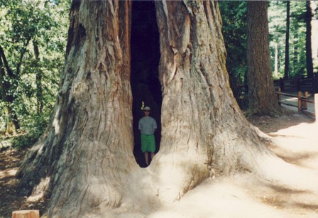 21.07.2002 tok venneparet vårt med oss til et Redwoodtreområde! Trærne der er så store, og et tre er mer enn nok til tømmer til et hus! Her er Halvard inne i treåpningen!:)