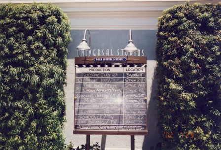 Inne i Universal Studio var det mye å oppleve. Her er en tavle med oversikt over hvilke filmer som holdt på å spilles inn i studiet!:)