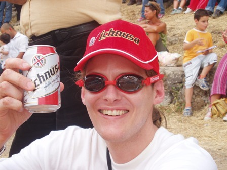 Mannen til venninnen min var også med på utflukten. Her er han en levende reklame for Sardisk øl!:)