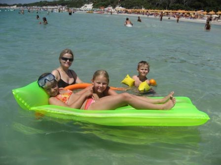Venninnen min og ungene hennes koser seg ute i vannet med flytemadrassen!:)