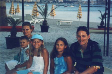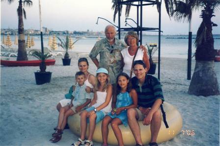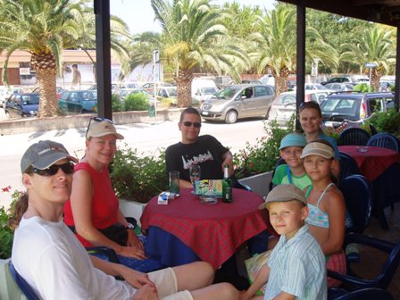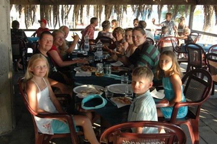 Marit, mannen til Marit, min venninne, mannen hennes og ungene deres samlet på stranden like ved restauranten hvor vi spiste!:)