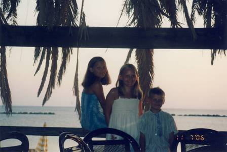Min venninne, hennes mann og ungene deres på stranden like i nærheten av restauranten hvor vi spiste!:)