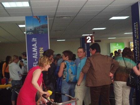 Her venter vi på å få baggasjen vår ved ankomsten til Alghero på Sardinia!:)