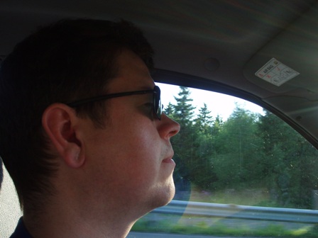 12.07.2007 reiste vi til Bodø for å delta på utstilling med kattene våre!:) Sjåføren sitter med et sikkert blikk på veien!:)