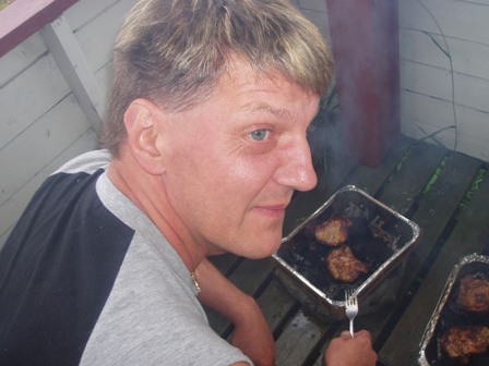 I Bodø bodde på Bodøsjøen camping sammen med venneparet vårt Anna og Micke. Været var dårlig, og det regnet, men likevel fant vi ut at vi skulle grille. Her er grillsjefen Micke!:)
