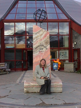 Meg selv ved monumentet på utenfor Polarsenteret på Polarsirkelen!:)
