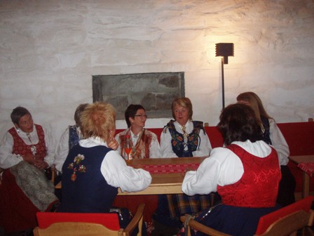 Siste post på progammet var at vi i Heimklang og Coro De Iddanoa De Monteleone skulle synge på lunchen til Trondheim Kommune inne i Erkebispegården. Her er Marit fra Heimklang sammen med en av sangerne i Coro De Iddanoa De Monteleone.
