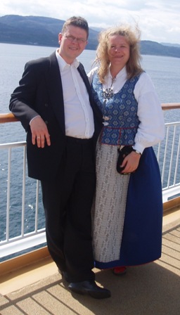 Tove og lederen for det sardiske koret ønsker oss velkommen ombord på hurtigruta Trollfjord!:)