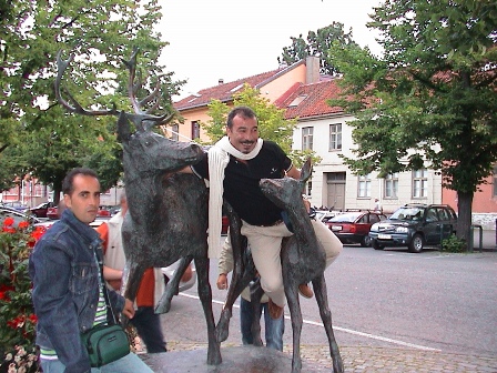 Etter middagen var ferdig ville noen av oss dra på en pub sammen. Noen av sangerne fra Coro De Iddanoa De Monteleone fant ut at de ville klatre på reinen som står i Munkegaten!:)
