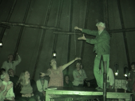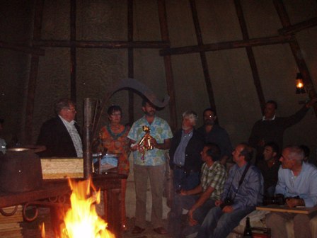 Lederen i Heimklang laget middagen. Her ønsker Ragnar alle velkommen til middagen. Tove hjalp til med å oversette!:)