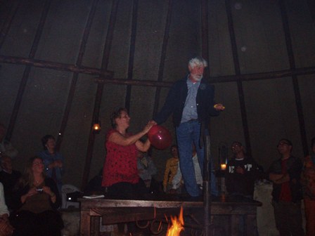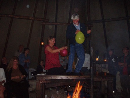 Giovanni og Hanne på avslutningsfesten i lavoen på Frøset Gård.
