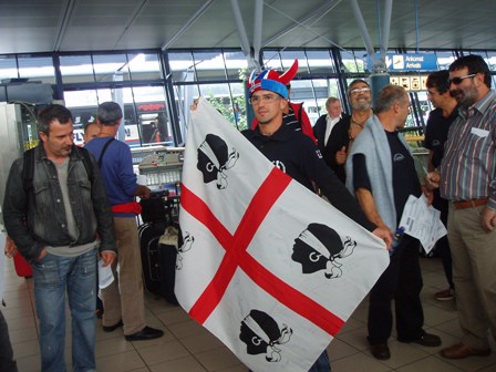 Ekte Sardisk turist med Norsk vikingerhjelm og Sardisk flagg!:)