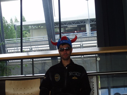 Broren til Giovanni hadde kjøpt seg en Norsk vikingerlue som souvernir!:)