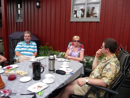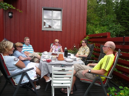 08.08.2010 inviterte min søster og hennes mann min tremenning Wenche, Wenche sin samboer (Morten), min mor, Halvard og meg hjem til kaffeselskap i hagen!:)
