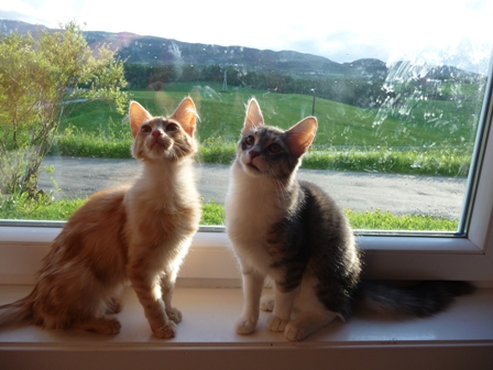Mira og Ascot Ace koser seg i vinduskarmen!:)