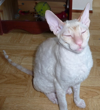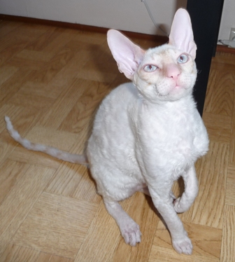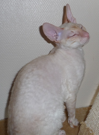 Avlshannkatten (Cornish Rex) til Silje. Han blir kaldt for Joje, og er en skikkelig kosegutt!:)