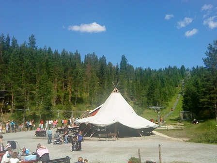 I dette teltet i Namskogan Familiepark foregikk det en barneforestilling.