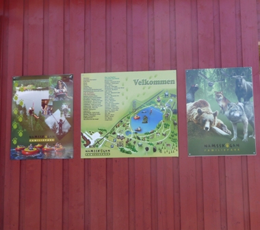 Inngangspartiet i Namskogan Familiepark med oversikt og kart over parken.