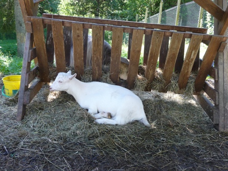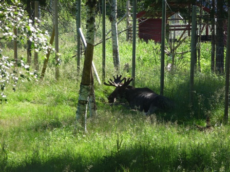 Den ene av elgen i Namskogan Familiepark slapper av i skyggen.