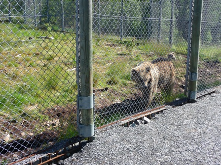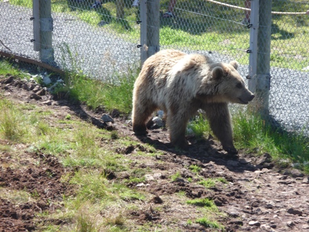 Denne bjørnen var mest interessert i publikum som hadde tatt turen dit hvor bjørnene hadde sitt tilholdsted i Namskogan Familiepark.