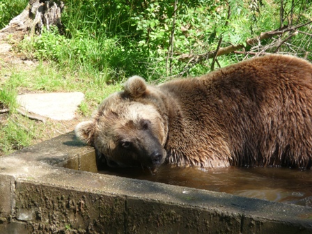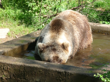 Bjørnen i Namskogan Familiepark koser seg i badekaret sitt!:)