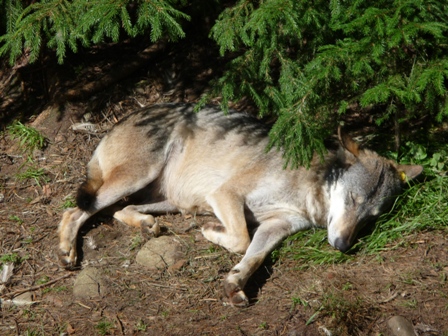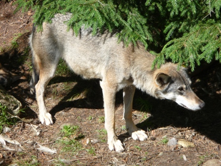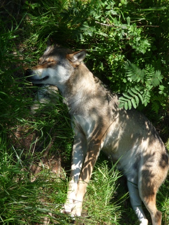 Så tok vi turen dit hvor ulvene hadde sitt tilholdssted. Denne ulven hadde søkt tilflukt i skyggen.