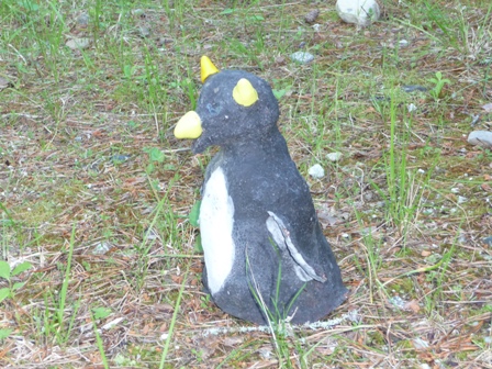 I Namskogan Familiepark hadde de laget et pingvinområde med falske pingviner. Her er den ene av pingvinfigurene i parken.