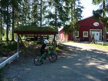 Nevøene våre prøvde ut barnesykkelløypen inne i Namskogan Familiepark.