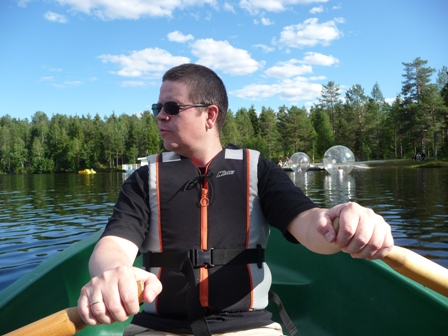 Alle som ville kunne låne seg en båt (robåt, sykkelbåt eller kano) for å ta seg en tur ut på vannet. Halvard og jeg lånte oss en båt, og vi rodde ut på vannet et liten tur.