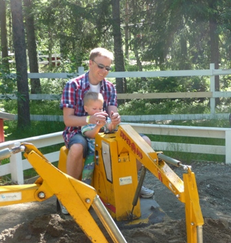 Venneparet vårt og deres 3 unger var også i Namskogan Familiepark 24.07.2010. Deres yngste sønn falt pladask for gravemaskinen i barneaktivitetsområdet. Godt å få hjelp fra sin far til å føre spakene!:)