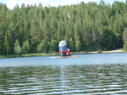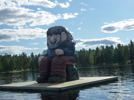 Trollfiguren ute på vannet i Namskogan Familiepark.