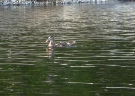 Andemor på svømmetur på vannet i Namskogan Familiepark.