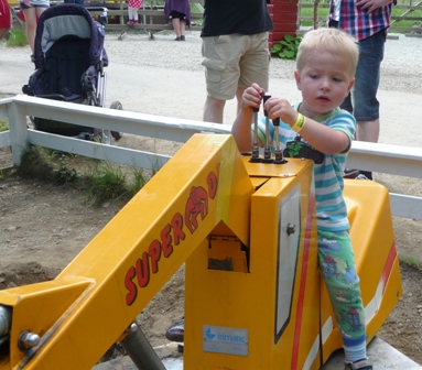 Yngste sønnen til venneparet vårt forelsket seg fullstendig i gravemaskinen som stod i barneaktivitetsområdet.