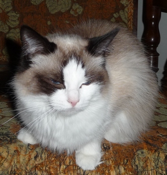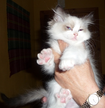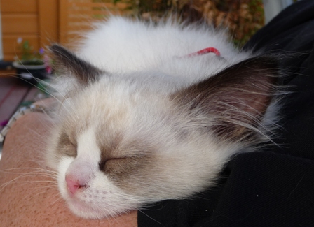 Ragdollkattungen som Elsa skulle ha sovnet på magen til Halvard, og der sov hun kjempegodt!:)