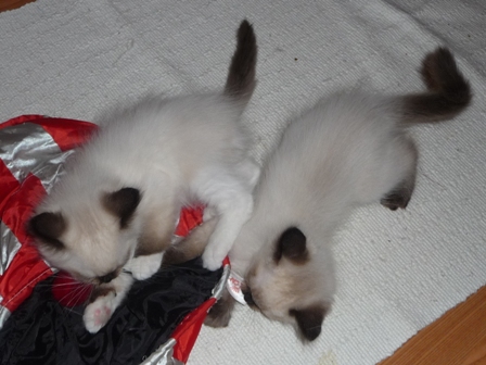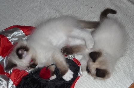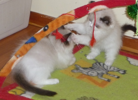 To ragdollkattunger i ivrig lek med hverandre!:)