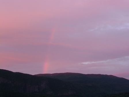 Kjempefin kveldshimmel med kjempefin regnbue.