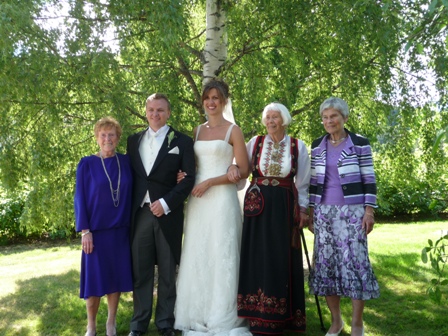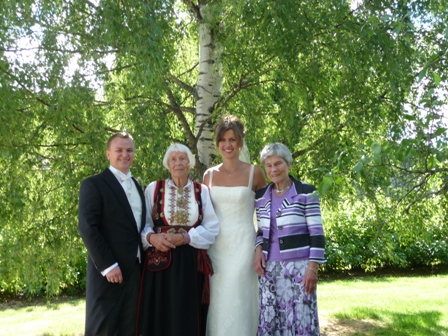 Brudeparet sammen med brudens mormor og farmor, og brudgommens mormor.