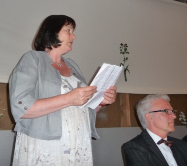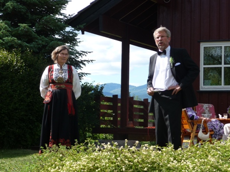Brudens foreldre fortalte litt om gården som er en solbærgård, og de fortlate også om Gvarv.