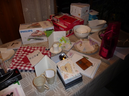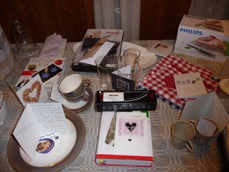 Fra brudgommens søsken fikk brudgommen gamle kjærlighetsbrev han hadde fått fra sine barne- og ungdomskjærester!:)