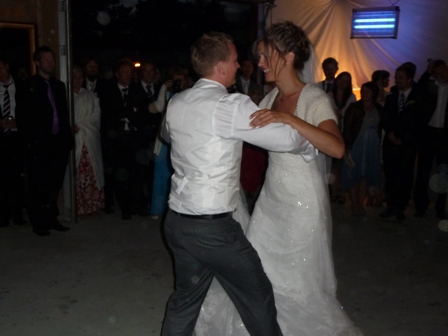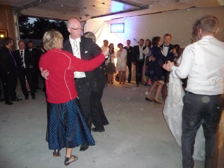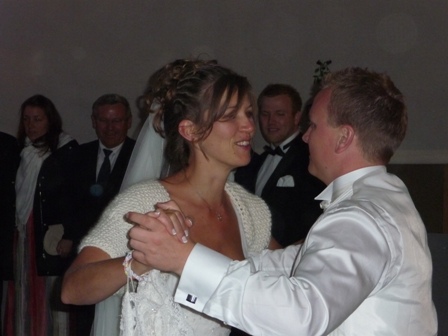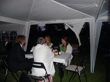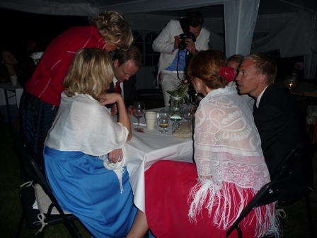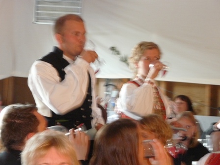 Underveis i middagen måtte brudeparet klatre opp på sine stoler for å kysse hverandre hver gang vi dunket på vinglassene!:)