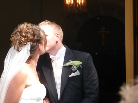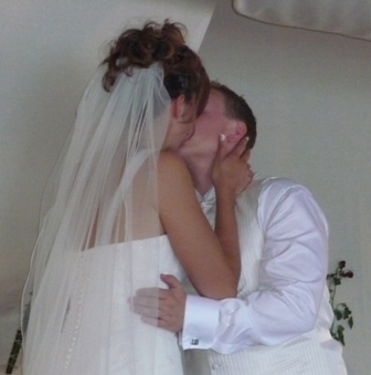 Det lykkelige nygifte brudepar i nok et bryllupskyss!:)