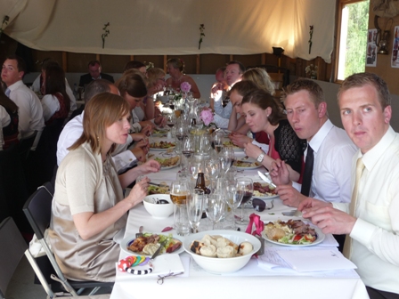 Bryllpsmiddagen er i gang, og brudens far holdt en kjempefin tale til brudeparet!:)