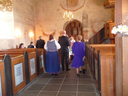 En tydelig spent brudgom og hans forlover inne i Nes Kyrkje før vielsen!:)