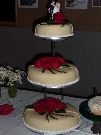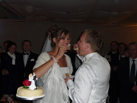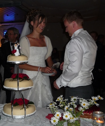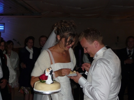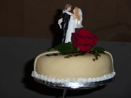 Toppen av bryllupskaken med bryllupsfiguren på!:)