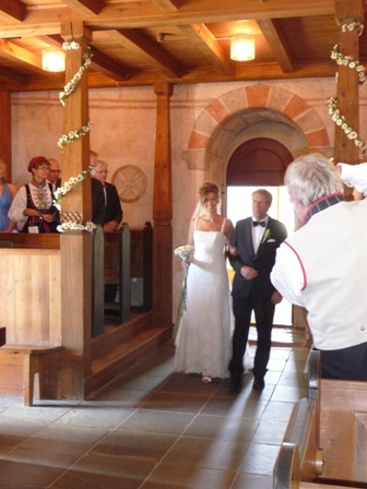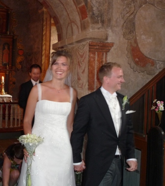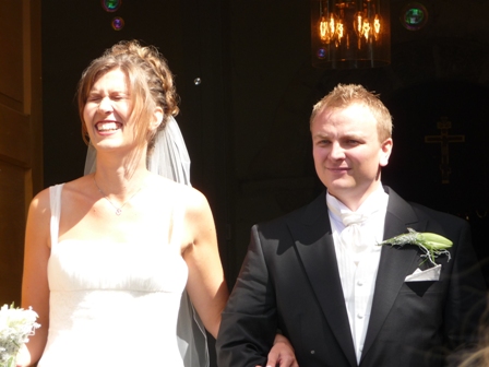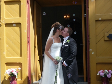Vielsen er ferdig, og brudeparet er på vei ut av kirken!:)