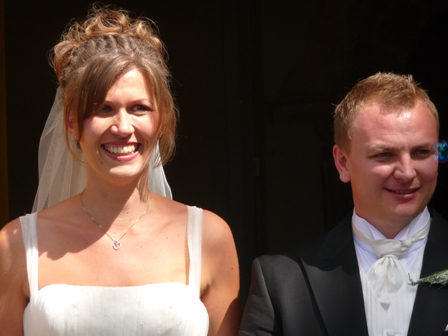 Det lykkelige nygifte brudeparet på kirketrappen!:)